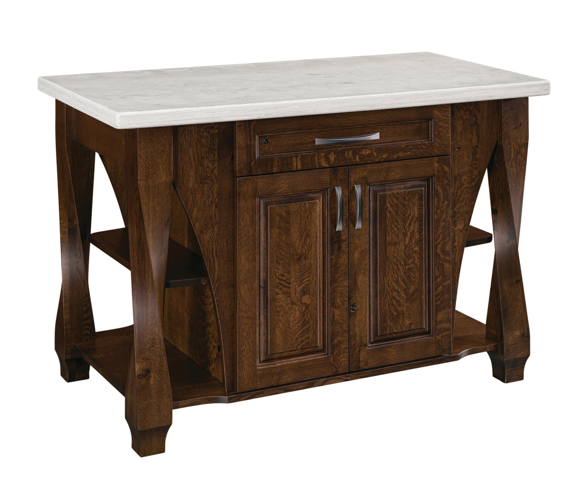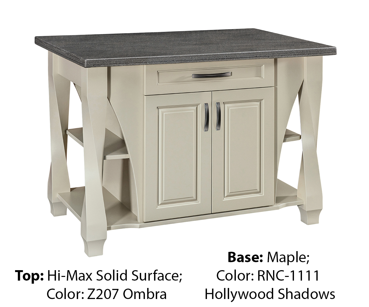 Shown With: Top: Hi-Max Solid Surface Wood – Base: Rustic Quarter Sawn White Oak Top: M611 Aurora Cloud Stain – Base: FC-42633 Manchester Hardware: 29394-AS (big pull), 29385-AS (small pull)